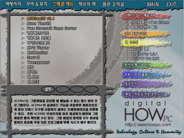 HOW PC 2002년부터 국내 최초(?) V3 로 검사해서 배포했던... 아하!PC PC사랑 인터넷시대로 바뀌면서 점점 pc잡지는 없어졌다. 이제 부록CD도 없어지고 책은..