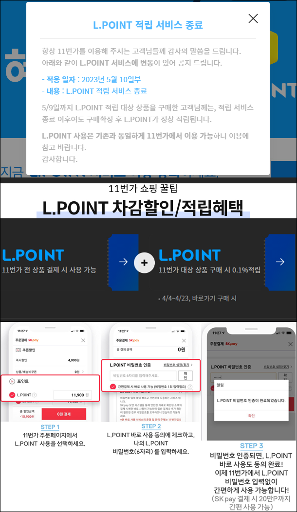 ● 종료서비스 : 11번가 엘포인트 적립 서비스