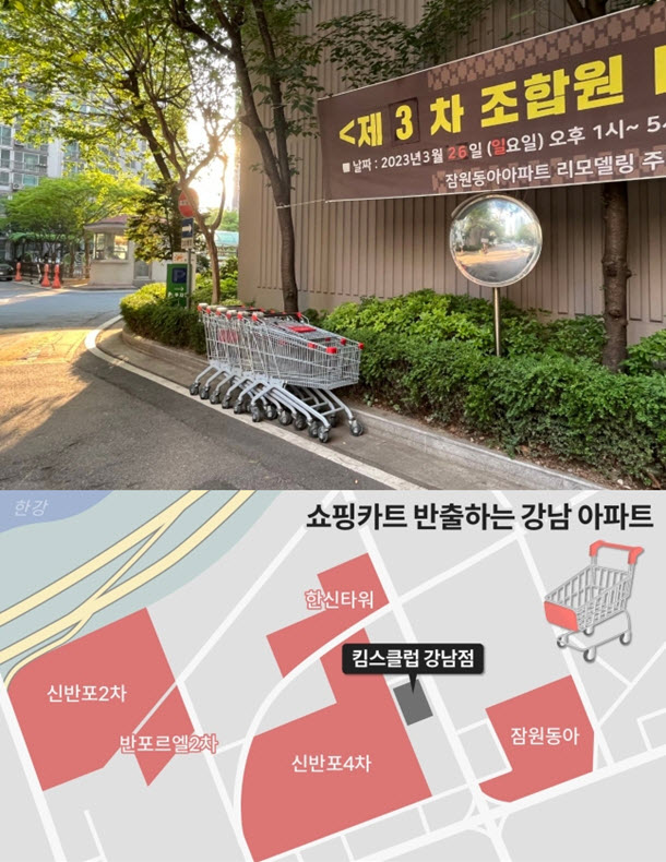 쇼핑카트 끌고 집에 가는 강남 아파트 주민들…마트측 “추적기 달아야 하나”