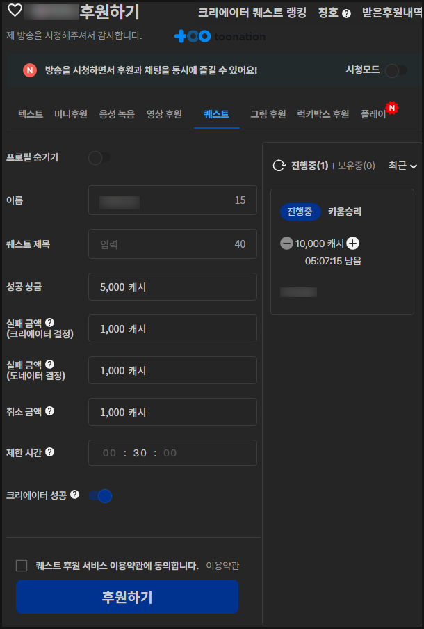 트위치에서 쓰이는 후원하면서 도전과제를 주는 기능이 있다.