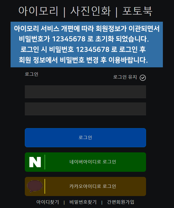 사진인화 업체 아이모리가 개인정보유출이 되었다는 소식이다.
