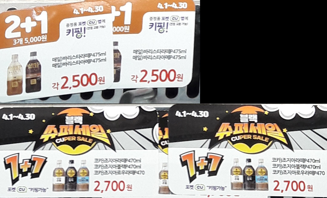 조지아는 1+1 이천칠백 행사하고있고,, 바리스타는 2+1 3개 오천원이다..ㄷㄷ