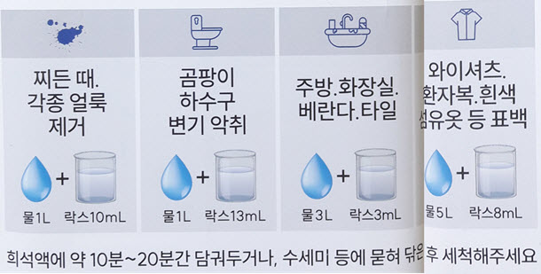 고농축이라서 조금씩 쓰면되겠지만 일반락스처럼 썼다가 아껴쓰지않으면 금방 없어진다.
