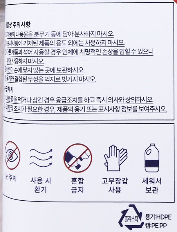 사용할때는 고무장갑 필수고 문을 열어줘야됨.