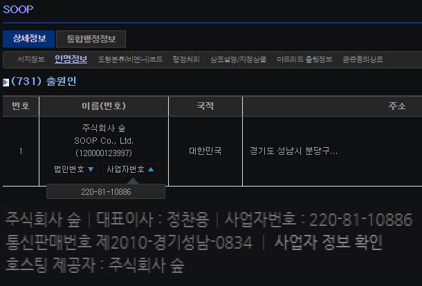 로고와 다르게 보이지만 'SOOP' 이름이 유사하고 도용가능성이 있어